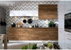 Kuchyňská linka Hamper s hladkými dvířky v barvě dub tabákový hezky vynikne s bílými lesklými dvířky, Není nutné ji kombinovat, ale vynikne tu kresba dřeva dub tabákový.