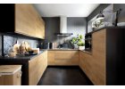 Kuchyňská linka Hamper s hladkými dvířky v barvě dub lancelot hezky vynikne s bílými lesklými dvířky, Není nutné ji kombinovat, ale vynikne tu kresba dřeva dub lancelot.