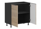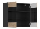 Kuchyňské dvířka jsou vyrobena z MDF nábytkové desky fólie v barvě magnolie perla mat, černá mat a LTD odstín dub Halifax přírodní