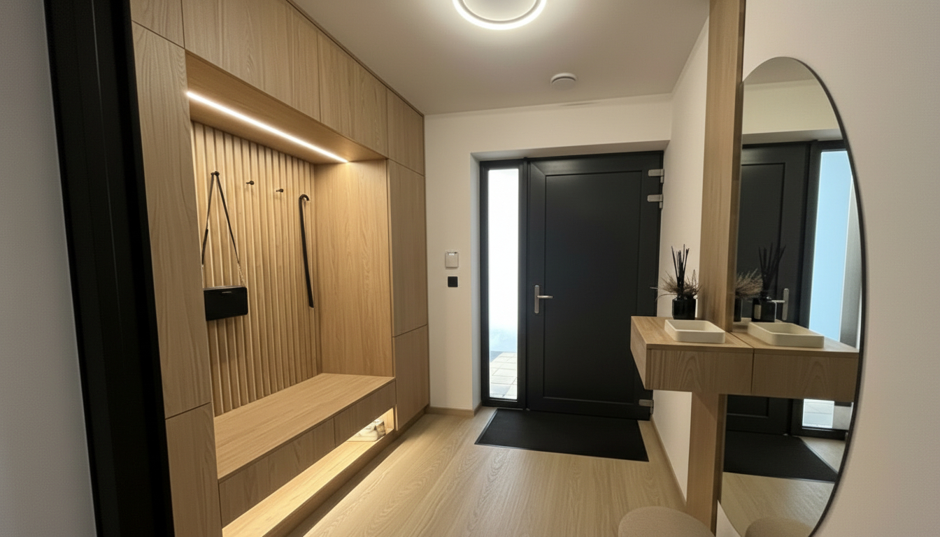 Realizace předsíně na míru - materiál H1385 ST40 dub casella přírodní Egger