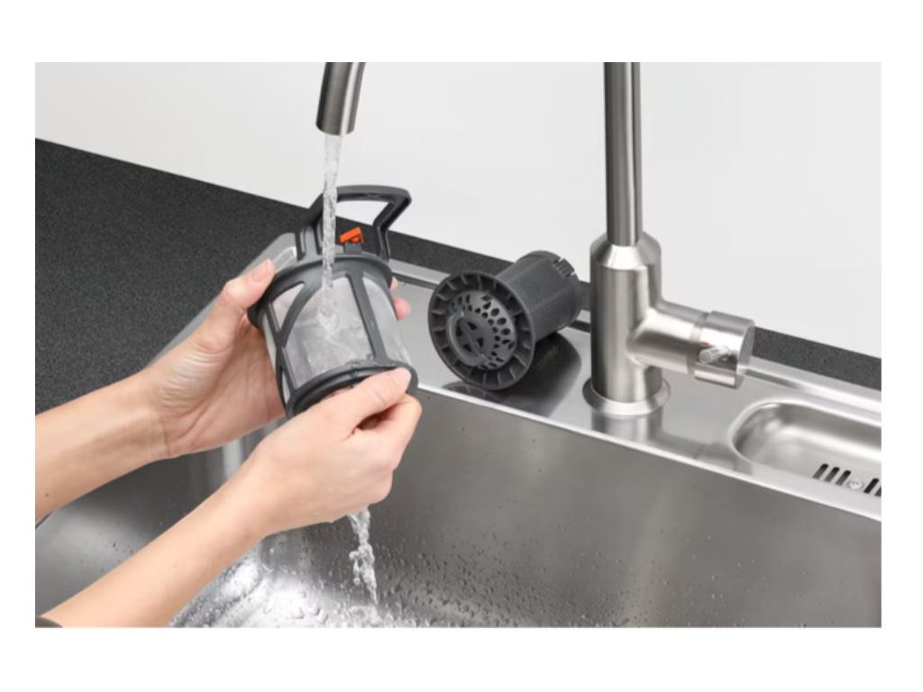 - Vodní senzor detekuje úroveň zašpinění vody a upravuje spotřebu vody