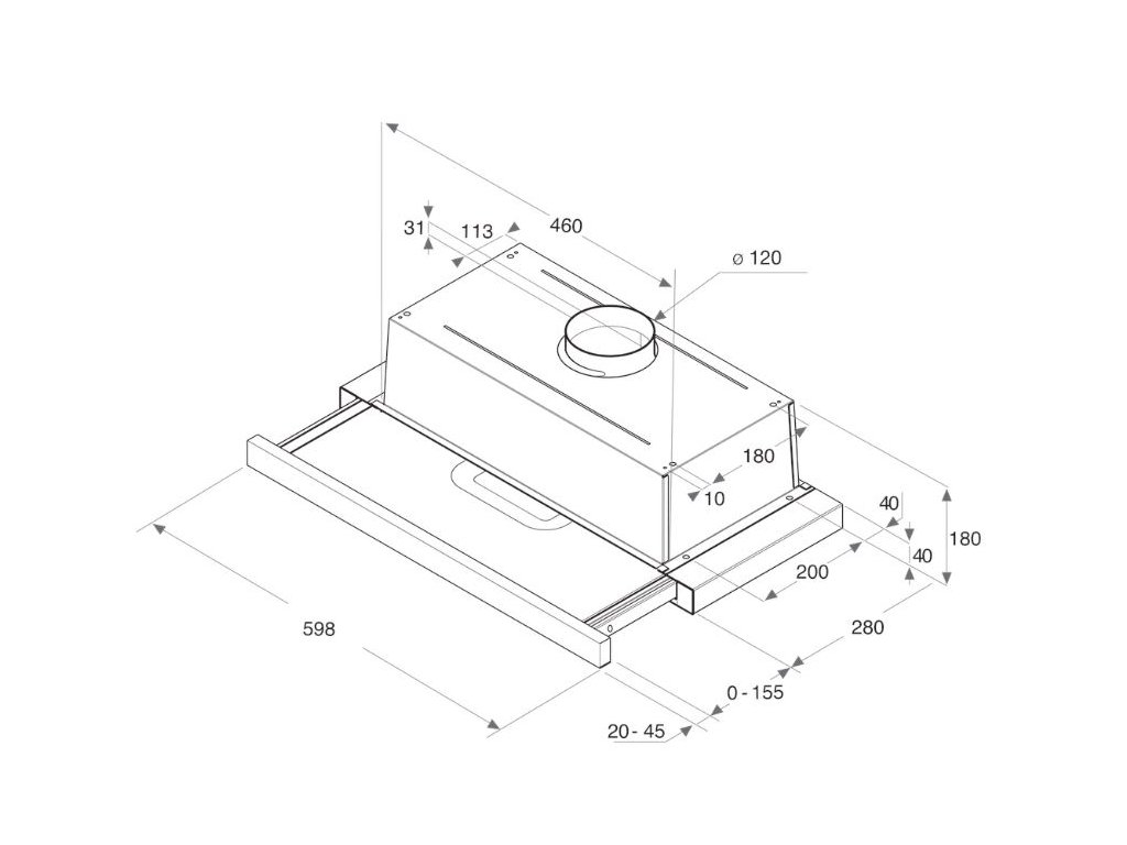 - Rozměry (v x š x h): 180 x 599 x 280 mm